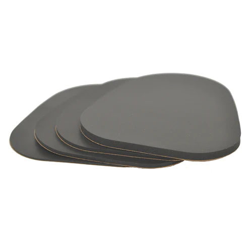 An oval-shaped sheet of microcellular urethane that adheres to your gun comb to help eliminate recoil to the cheek. These pads are also very useful if you need some adjustment to your line of sight.