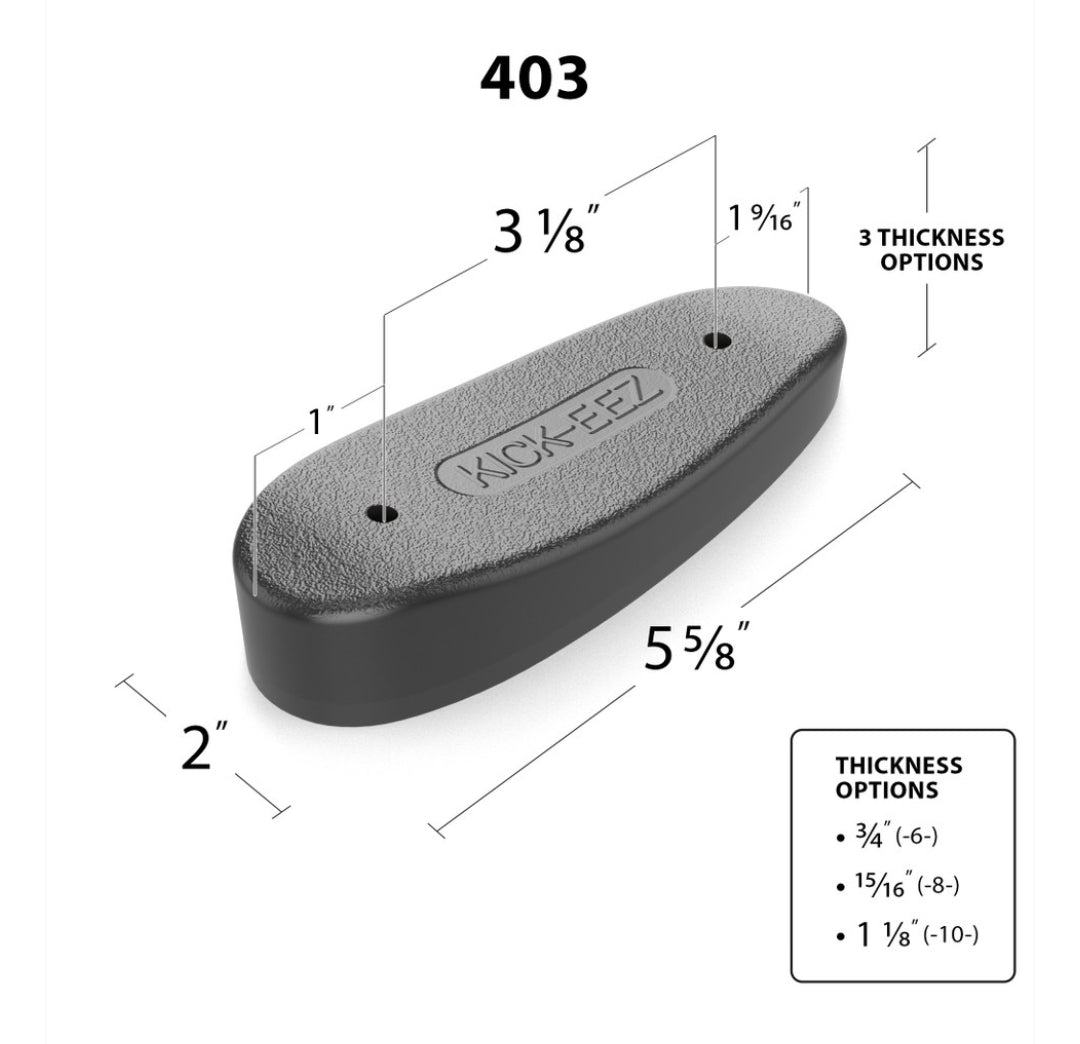 This recoil pad is slightly concave with a blast finish on the face. It gives you 100% contact with your shoulder, eliminating pressure points. The design allows you to shoulder the gun in the same position every time, especially those shooters who like to shoot from the high shoulder position.